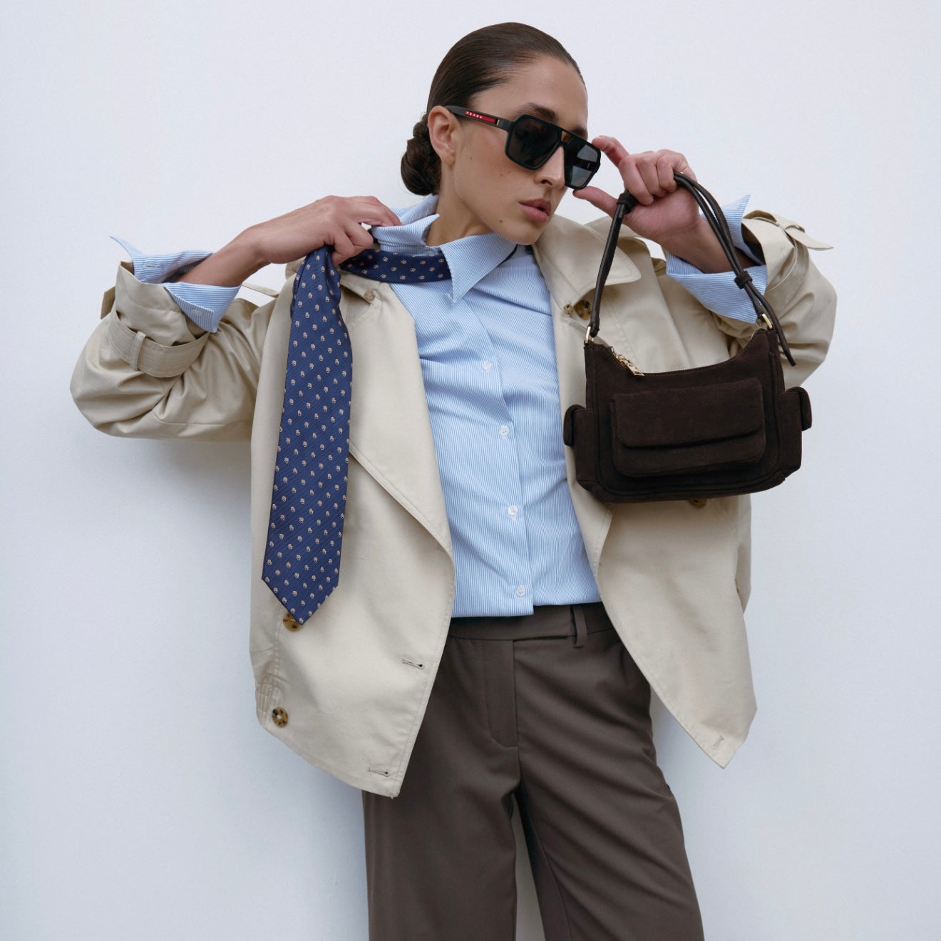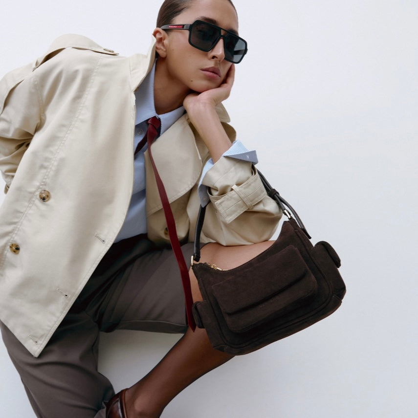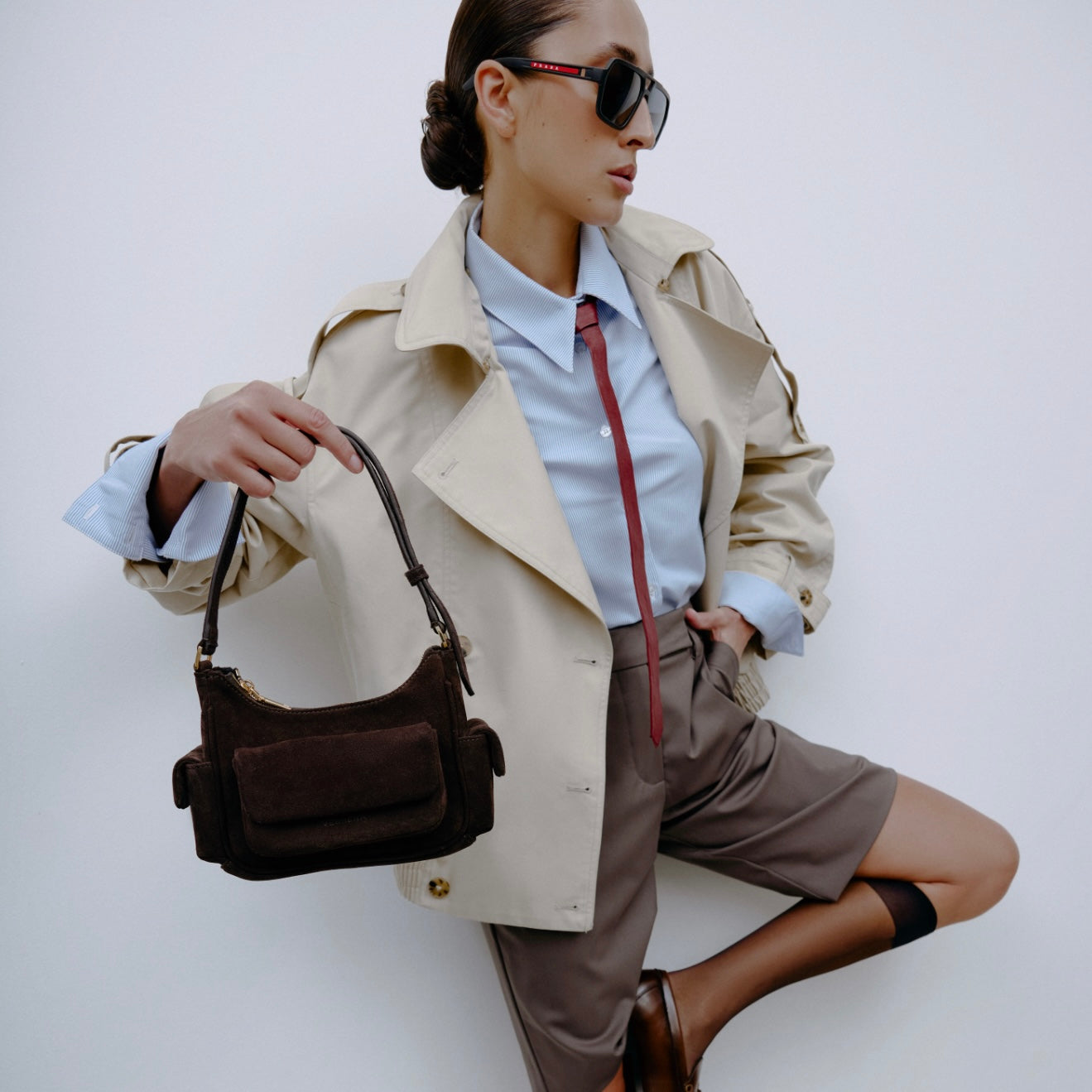 DESCRIPTION: ZOE BAG. GENUINE SUEDELEATHER. ONE COMPARTMENT AND TWO POCKETS INSIDE.