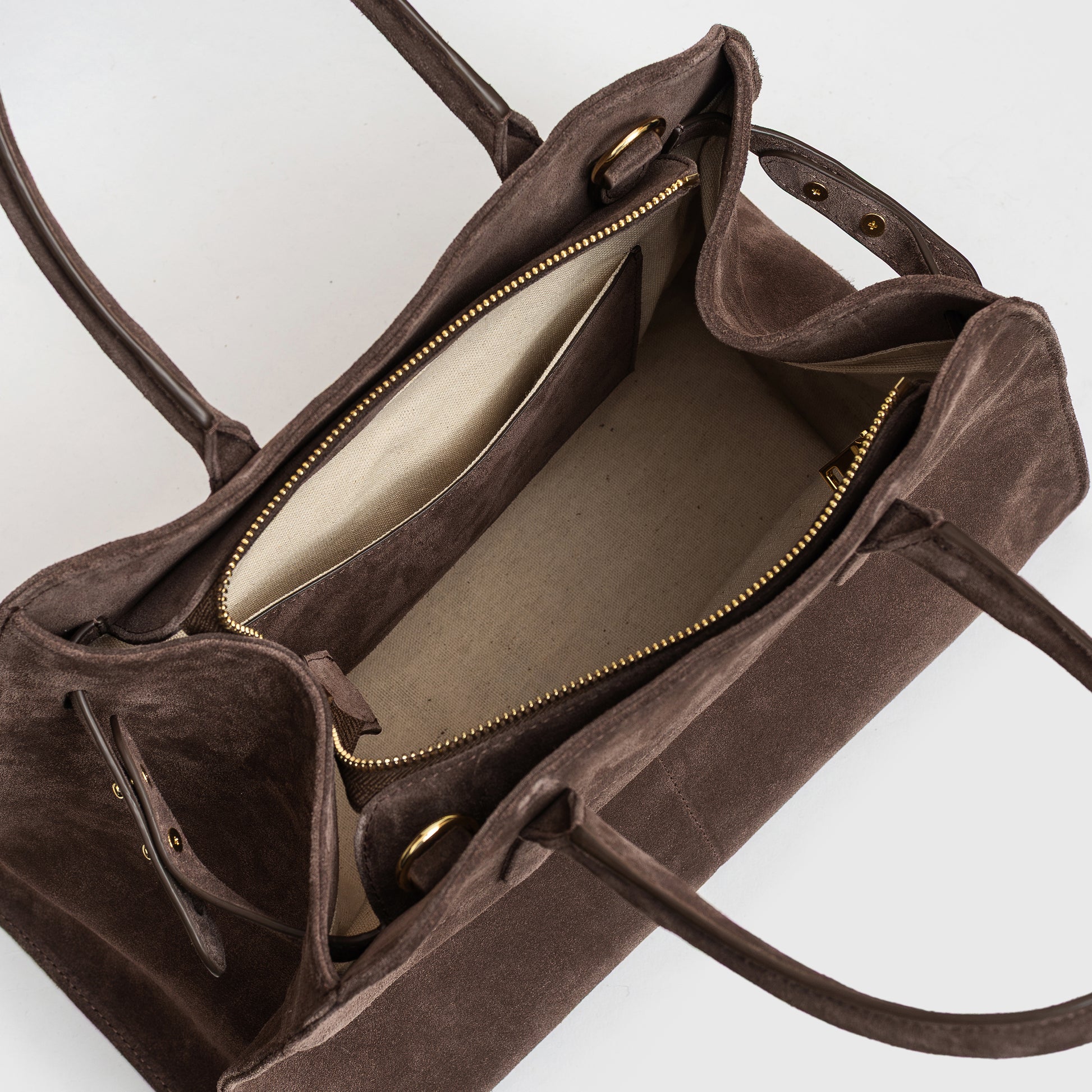 ОПИС: СУМКА З НАТУРАЛЬНОЇ ЗАМШІ. ВСЕРЕДИНІ ОДНЕ ОСНОВНЕ ВІДДІЛЕННЯ ТА ДВІ КИШЕНІ. ПРЕДСТАВЛЕНА В УНІВЕРСАЛЬНОМУ РОЗМІРІ.