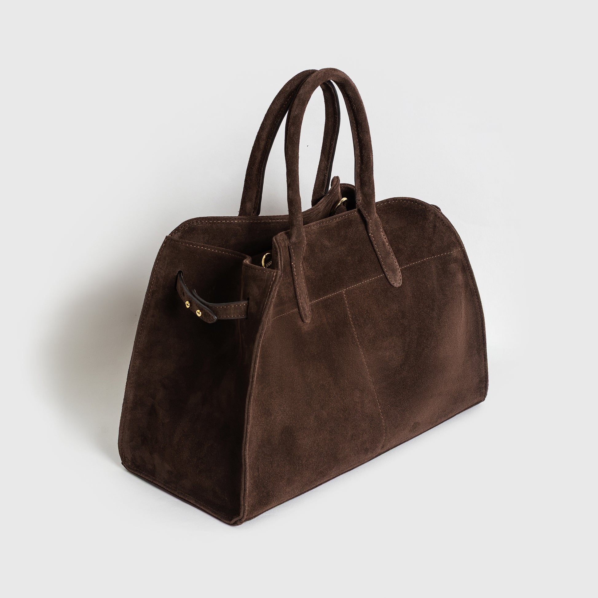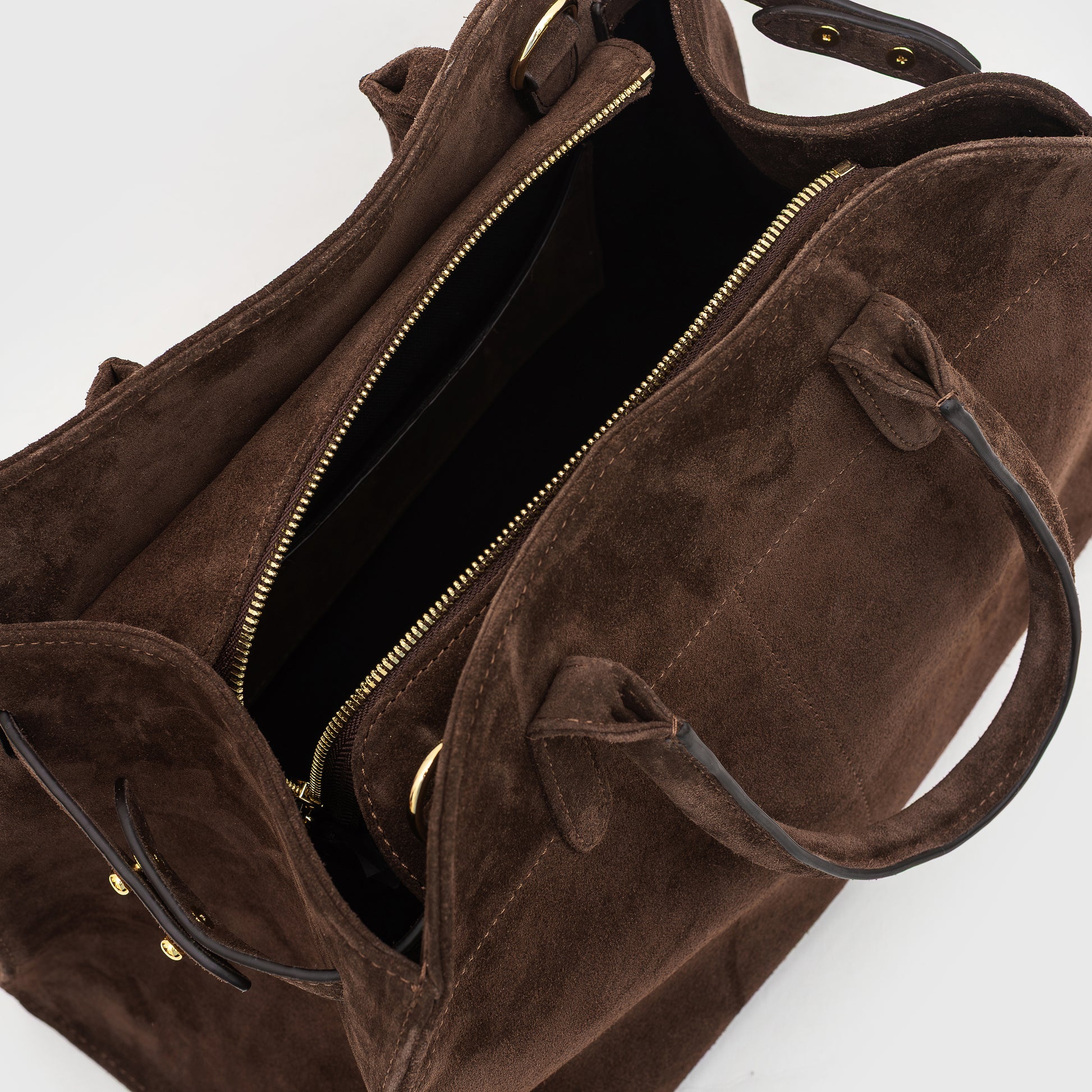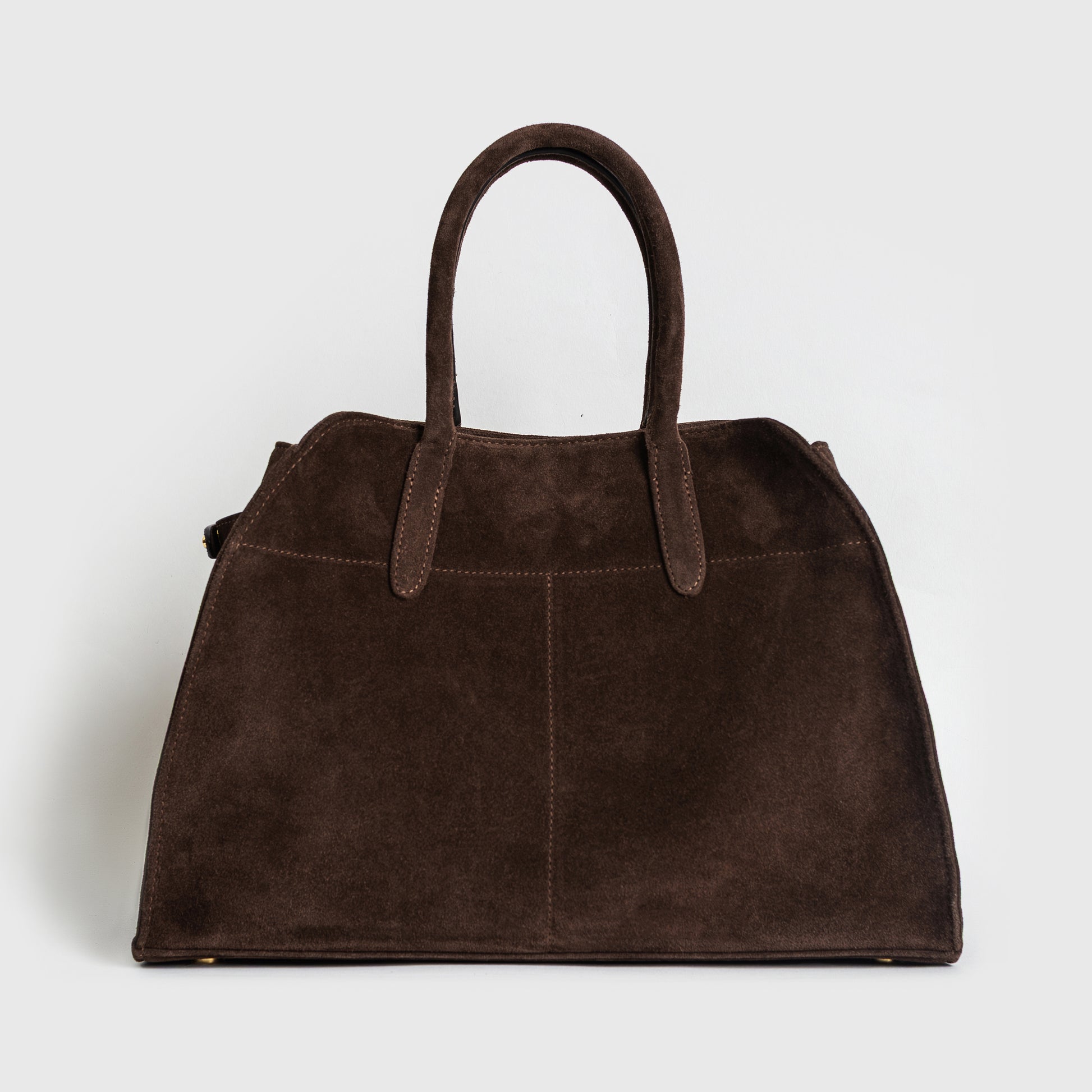 ОПИС: СУМКА З НАТУРАЛЬНОЇ ЗАМШІ. ВСЕРЕДИНІ ОДНЕ ОСНОВНЕ ВІДДІЛЕННЯ ТА ДВІ КИШЕНІ. ПРЕДСТАВЛЕНА В УНІВЕРСАЛЬНОМУ РОЗМІРІ.